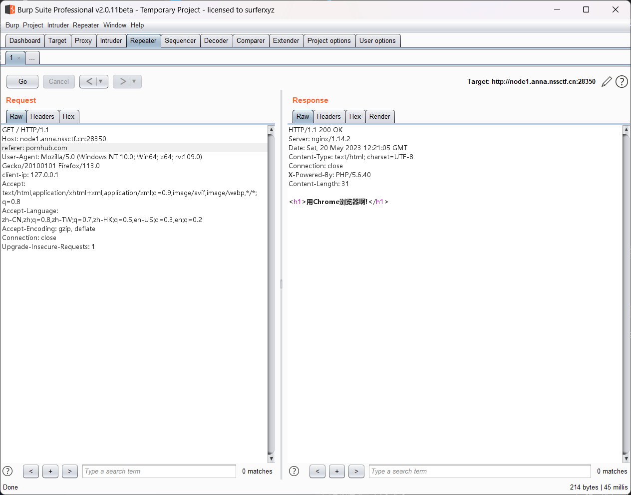 进入页面,只显示了一个**只允许本地访问,查看源码发现什么都没有,那么我们burpsuite抓包试试