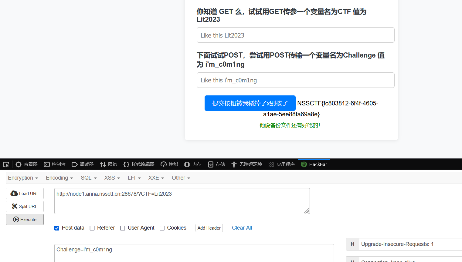 进入到你提交的文件后打开hackbar,用post提交分别输入
