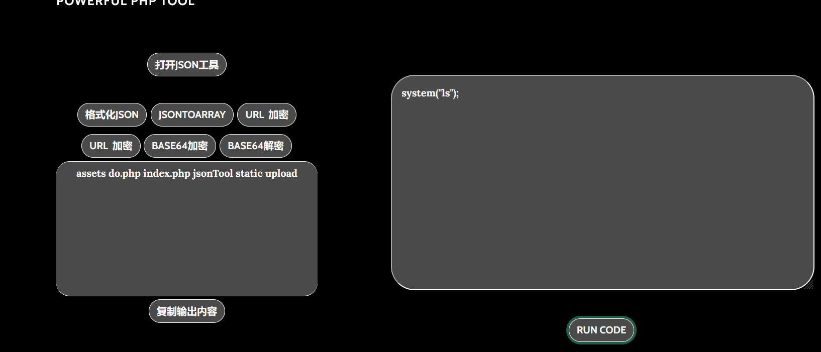 给了一个注入点,尝试一下能不能命令执行,输入system(“ls”)