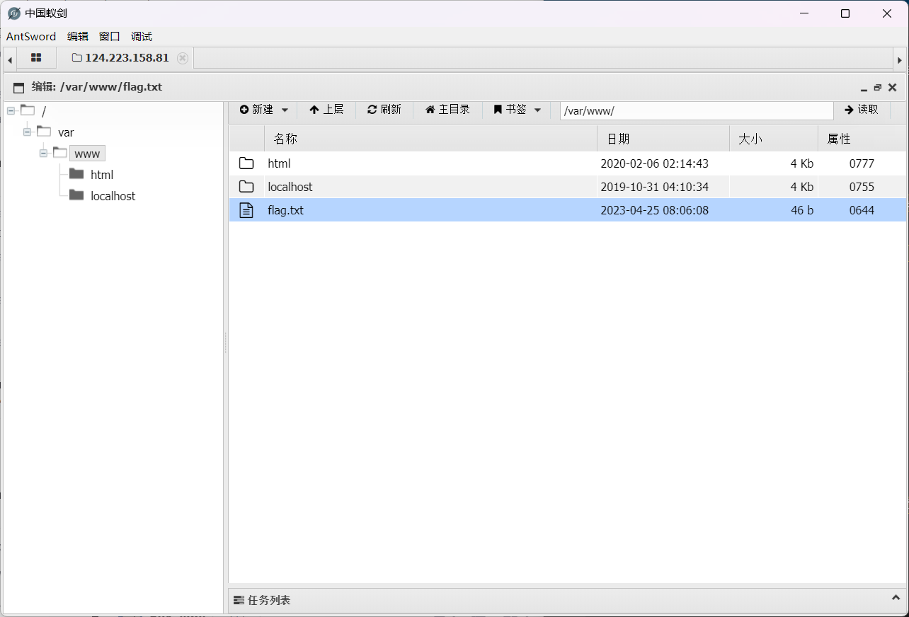 连接后,flag就在网页根目录中