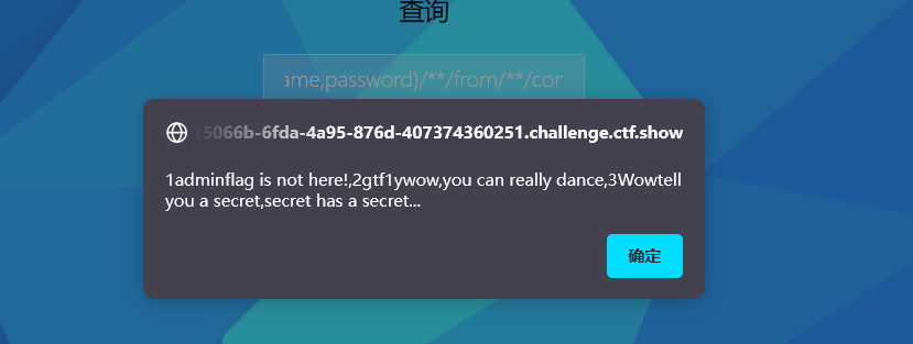 首先狠狠的注入,输入以下payload使sql恒成立