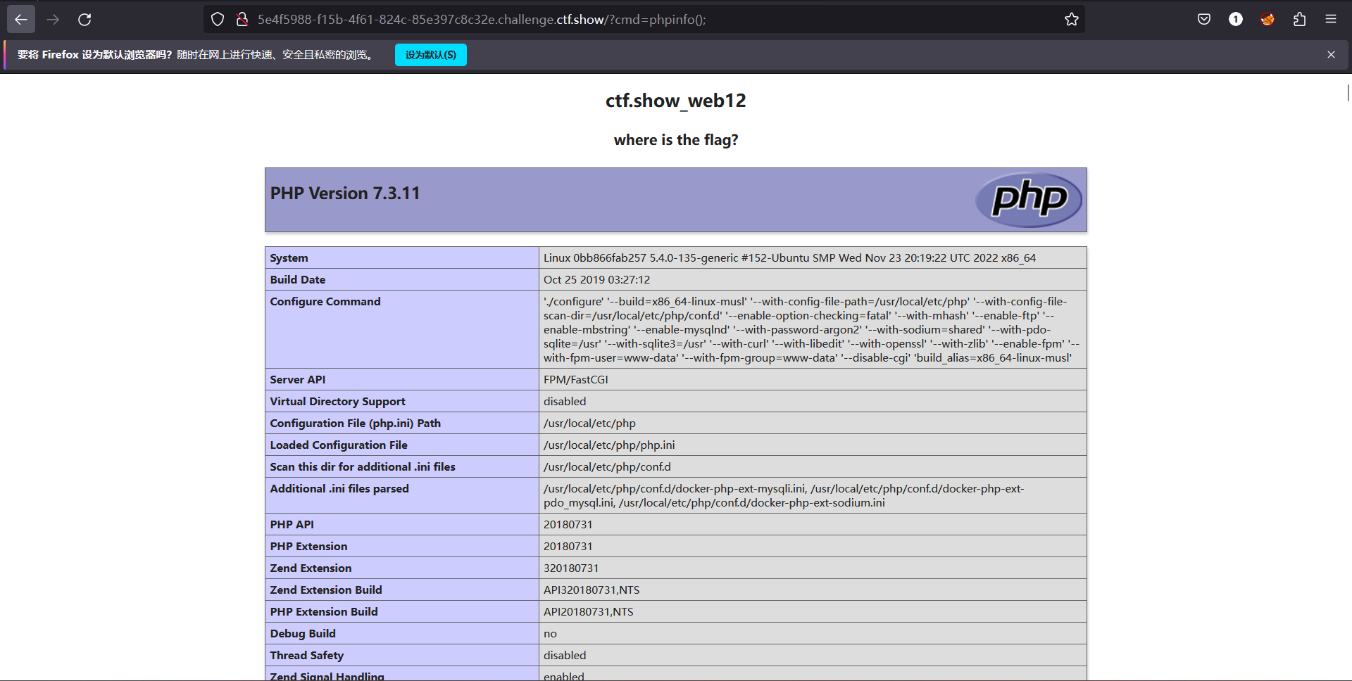(phpinfo函数可以显示出PHP 所有相关信息。是排查配置php是是否出错或漏配置模块的主要方式之一!)发现有回显