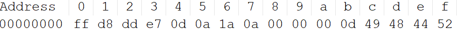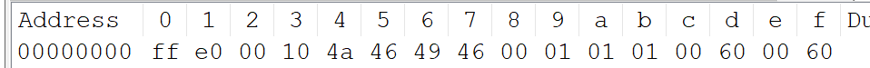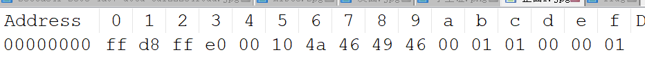 方法二: 用notepad++十六进制打开flag,发现第一行和.jpg格式十分相像 找一张电脑jpg图片第一行代码 对比发现flag少了d8 和ff,插入到ff和e0中 保存退出,改为jpg格式即可 这时就可以看见图片了,但flag不在图片中 同样的,使用字符解码即可得到flag