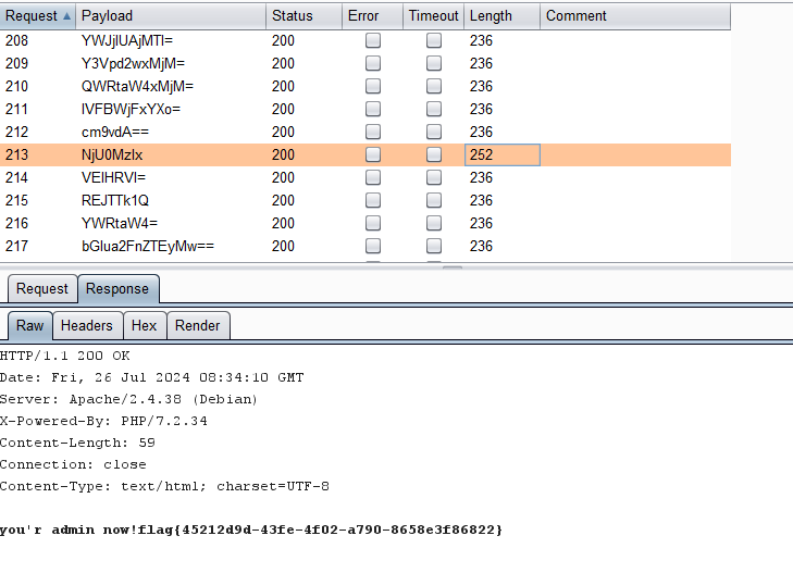 龙溪秘境 这题也属于签到题,这题当时不知道npc都在第一题里,hint提示是拍照局长,然后就爆破各种大小写的组合哈哈。 hint: 拍照局长:少侠,此题仅凭burp亦能破解!此工具妙用无穷,只需巧妙运用,必能解决难题。愿汝坚定信心,奋力一搏
