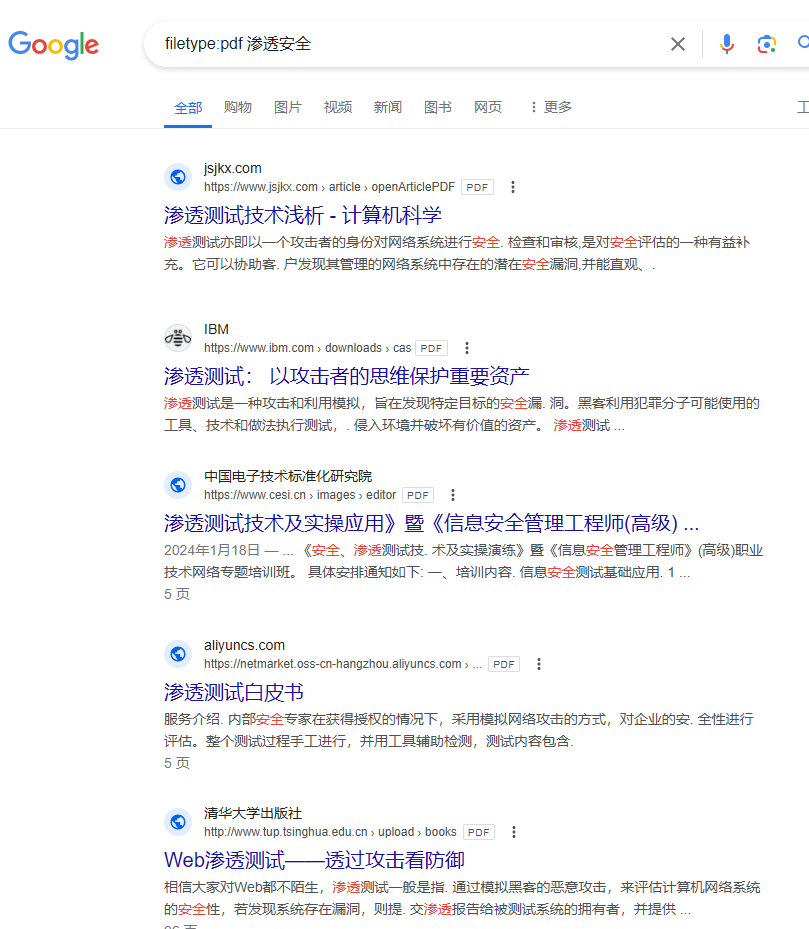 被动信息收集方式是指利用第三方的服务对目标进行访问了解,例:Google搜索