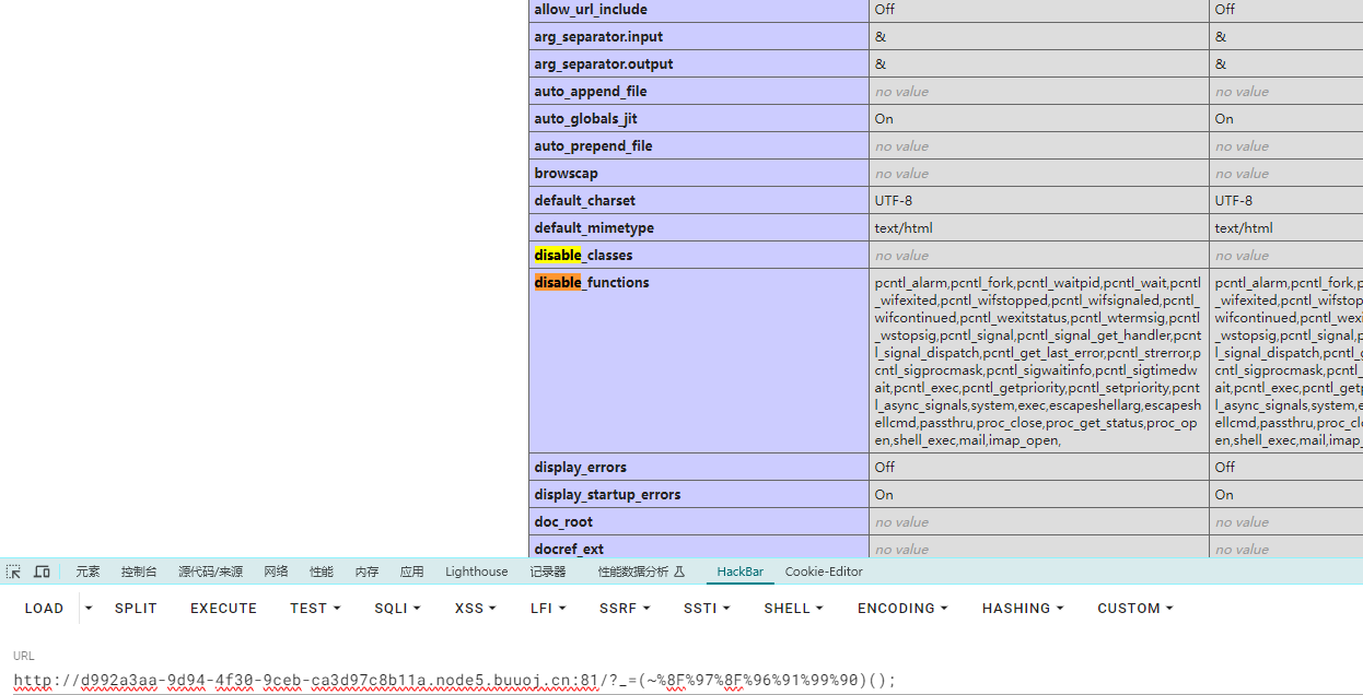 核心思想: 实现用PHP代码调用C代码的方式,先声明C中的命令执行函数,然后再通过FFI变量调用该C函数即可Bypass disable_functions 即先声明后调用 它的利用版本正好也是php7.4以上,还要检查一下是否开启FFI扩展且ffi.enable=true FFI处于enable状态 在连接到蚁剑后发现有一个preload.php文件