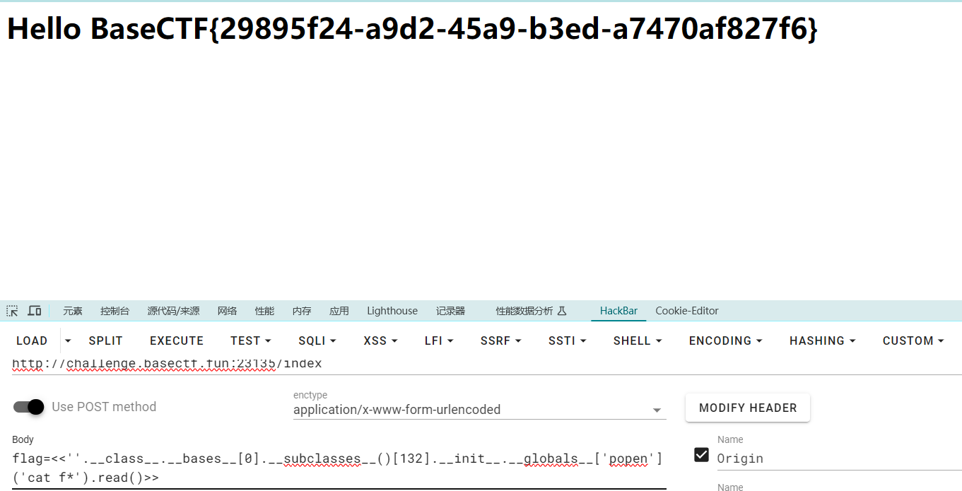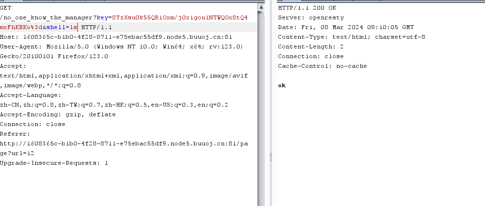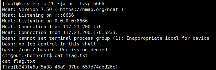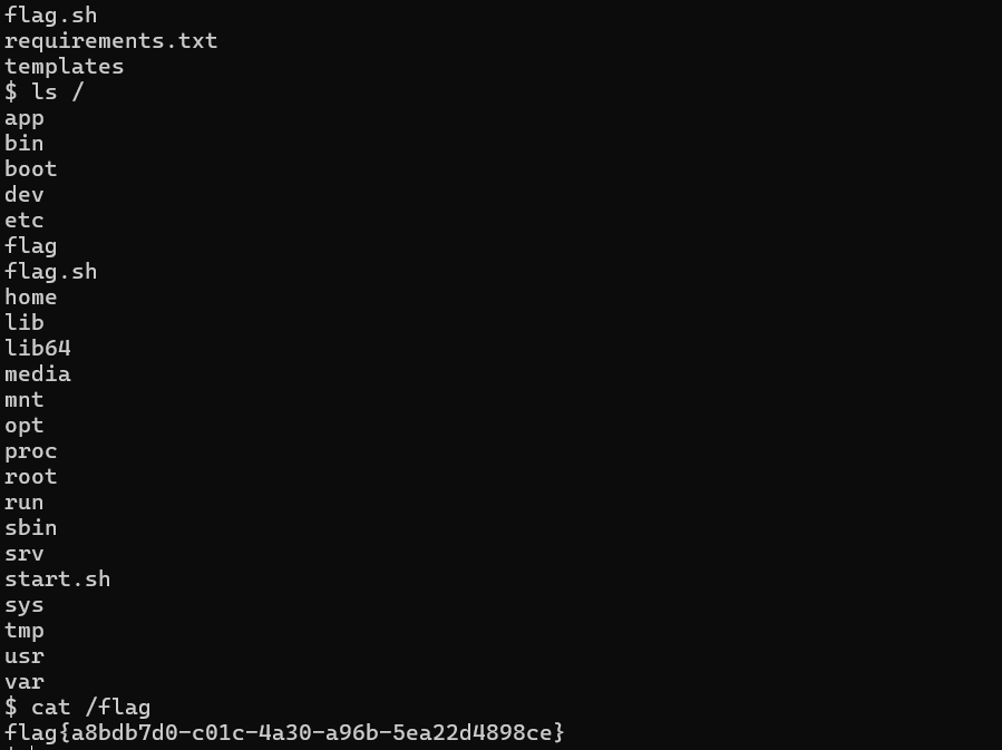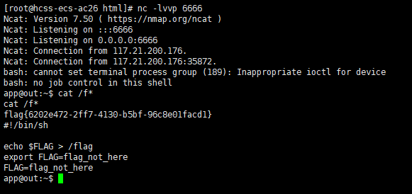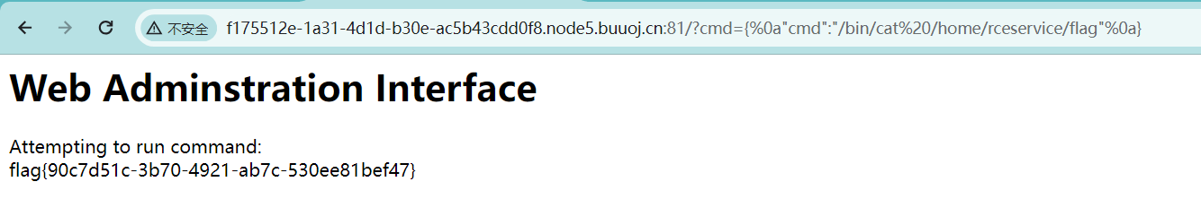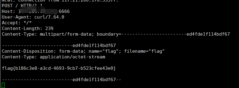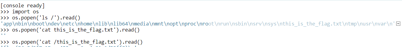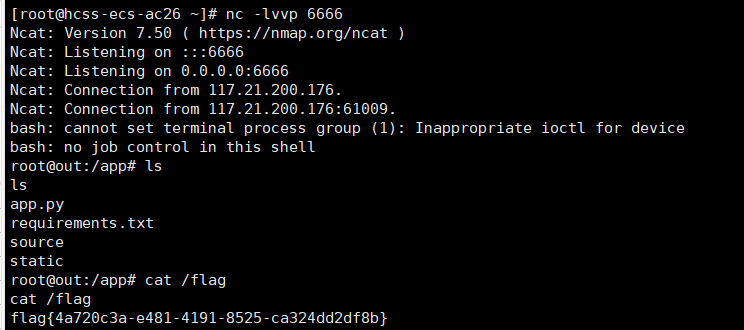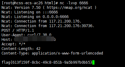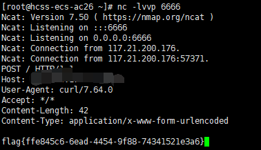 指定的ret内容既是最终的执行命令,通过最后的return调用,返回flag,这里无回显,但是打过去没报错,需要监听,反弹shell行不通,不到为什么
