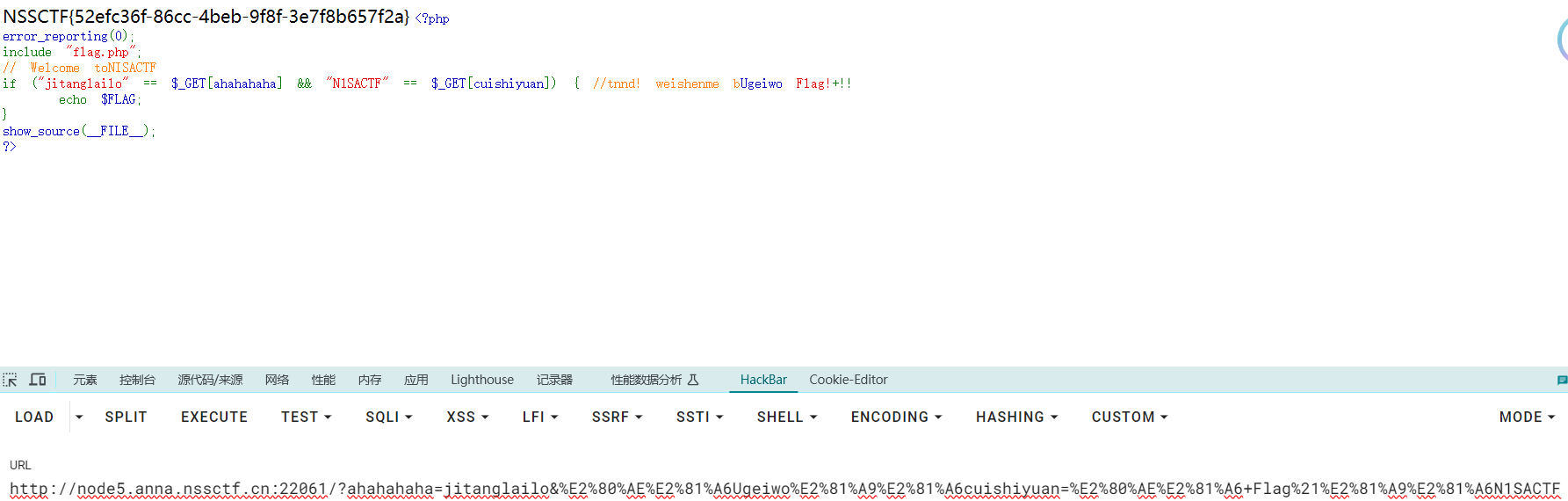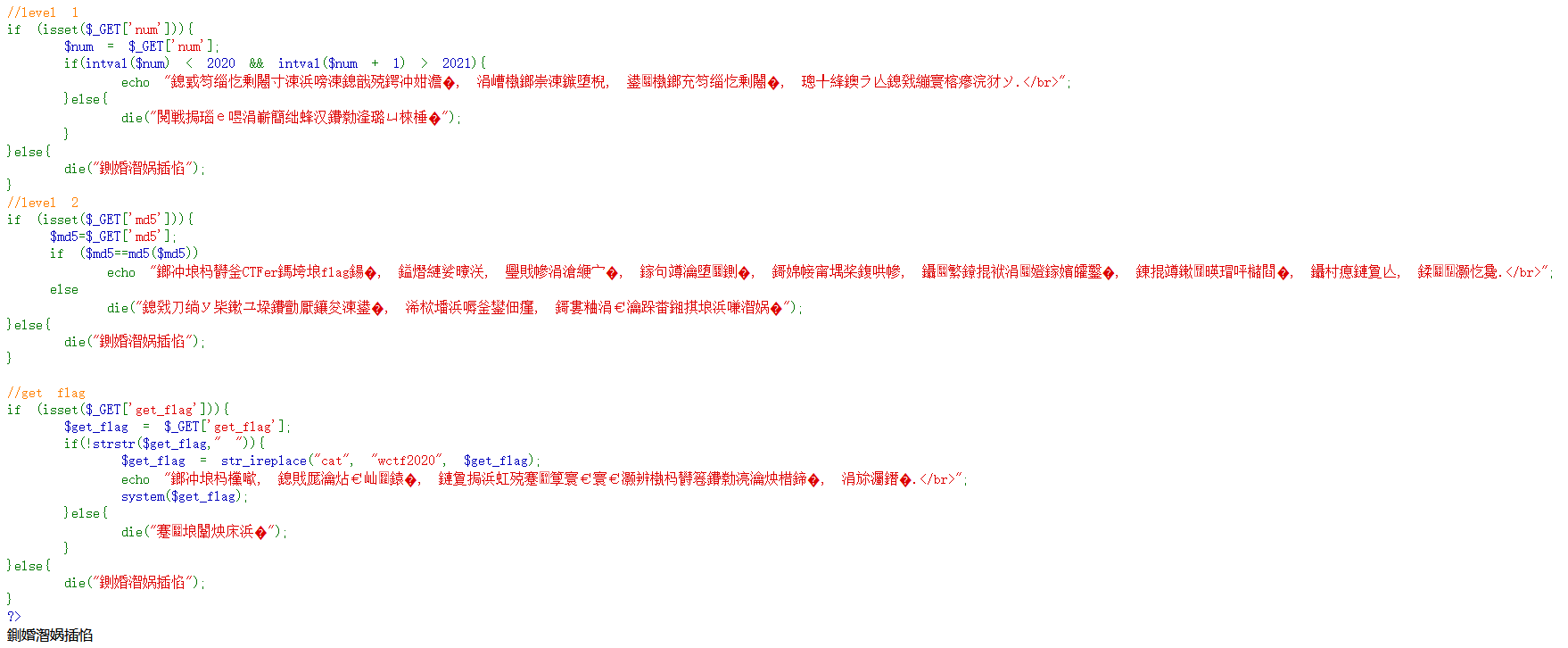 发现第五个if可以获得flag 先第一个ifif(isset($_GET['gg'])&&isset($_GET['id']))