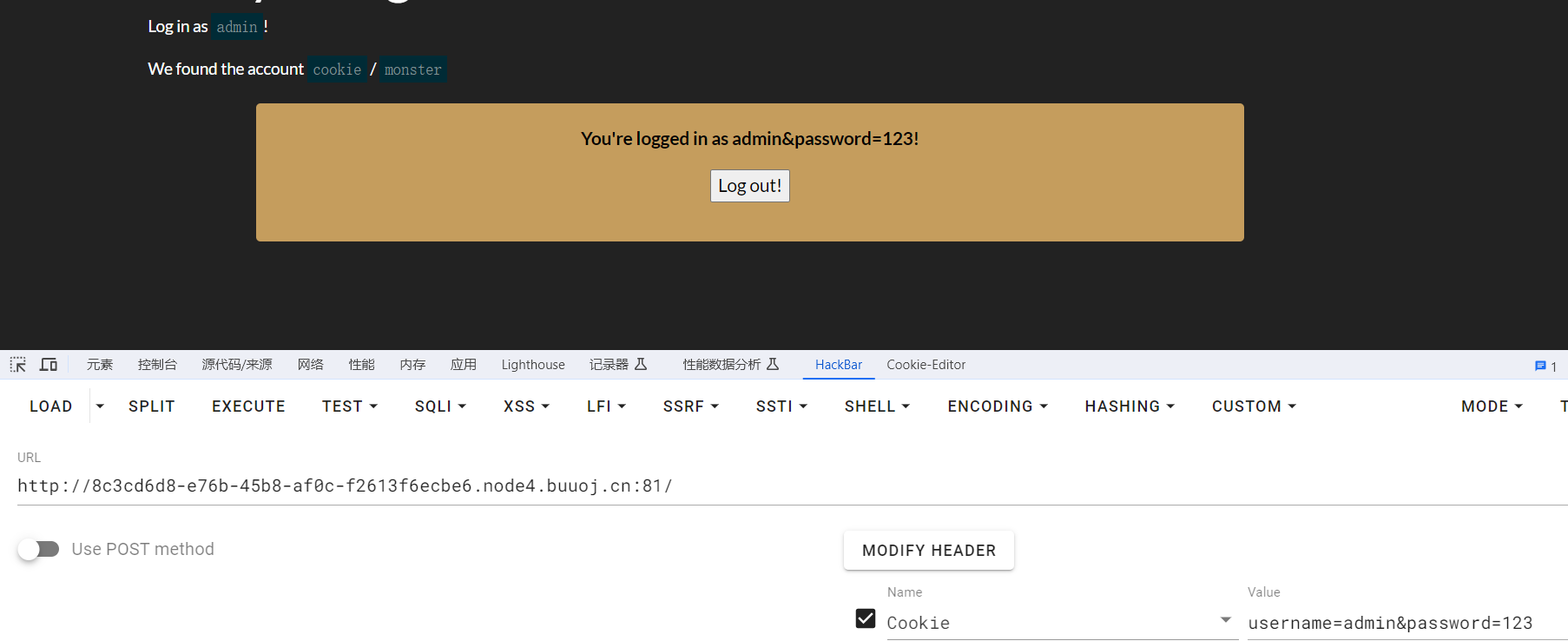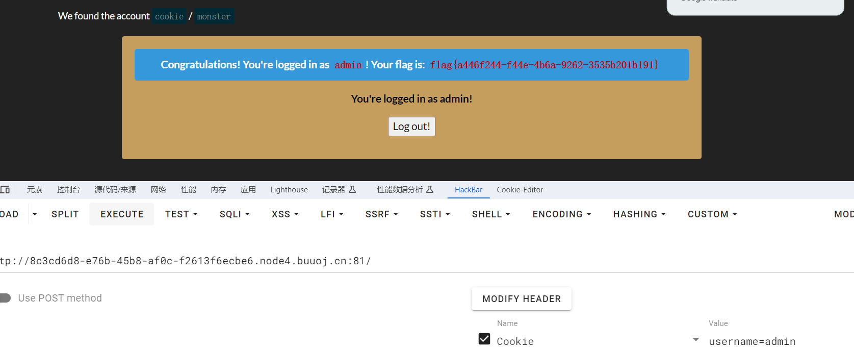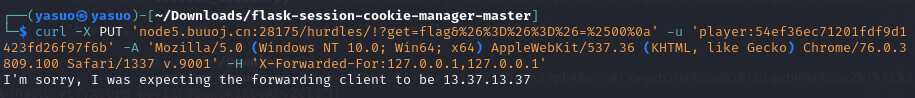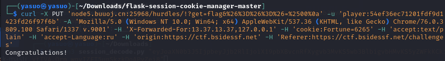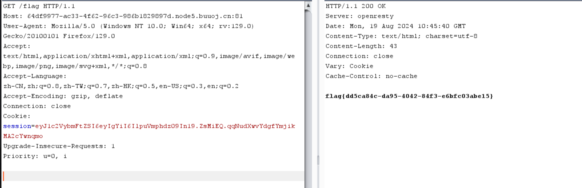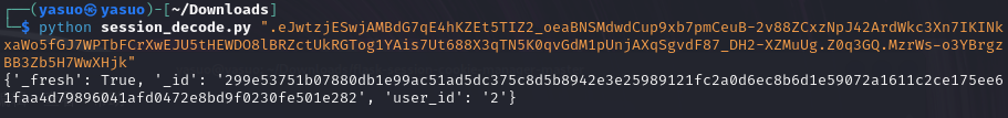 使用session_decode解密一下 设想通过改id的值为0来实现越权,失败 在没有什么信息可以修改,除非 发现cookie中有个参数为user 再次解密 尝试修改它的值为admin 应该是与flask的签名有关 使用工具Flask-Unsign