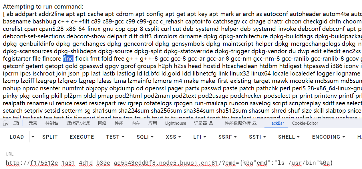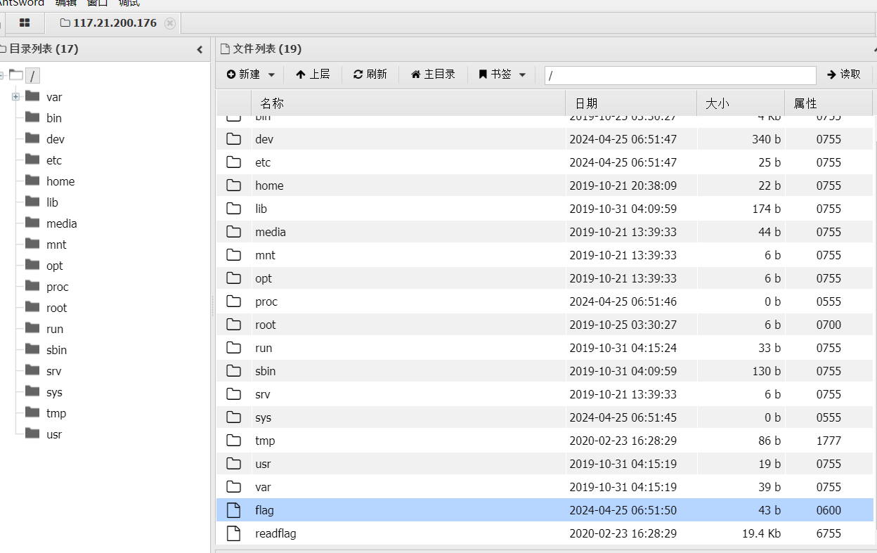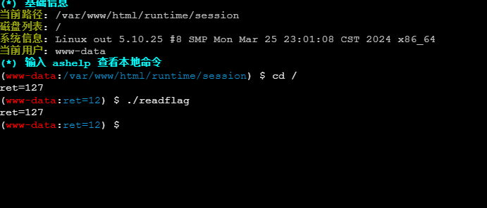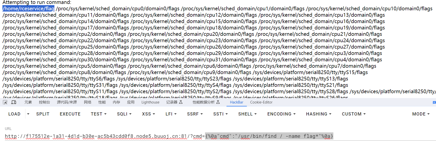 然后进入这个路径,竟然不用命令执行flag就给了,命令执行也没用其实