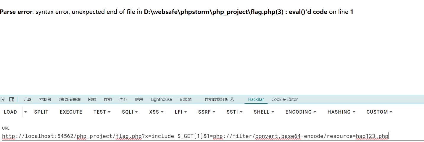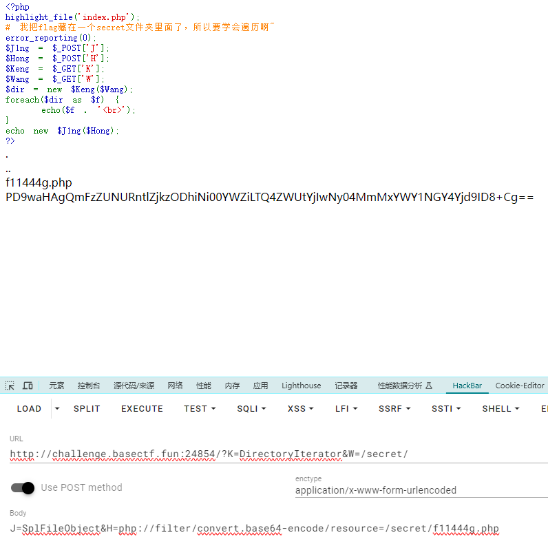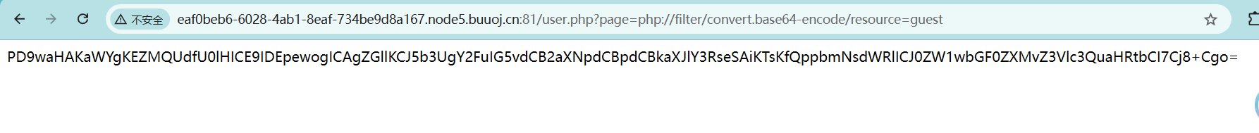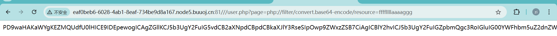 正则表达式,说明file不能出现flag字符 但是源码提示了useless.php这里使用php伪协议来读取文件
