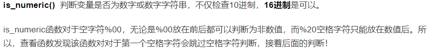 is_numeric()函数是检测是否为数字字符,是则ture 这里为!is_numeric(),就是不能全为数字字符 同时我们看向第五个ifif($passwd==1234567)