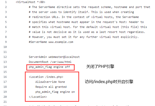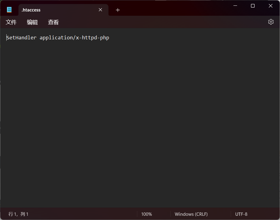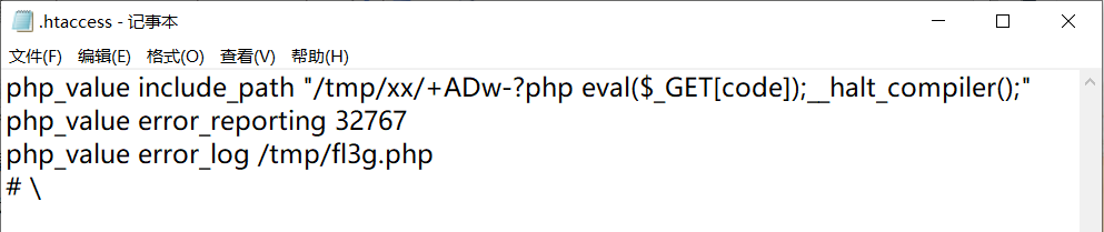 htaccess htaccess文件是Apache服务器中的一个配置文件,它负责相关目录下的网页配置。通过htaccess文件,可以帮助我们实现:网页301重定向、自定义404错误界面、改变文件拓展名、允许/阻止特定的用户或者目录的访问、禁止目录列表、配置默认文档等功能 这里htaccess内容的意思是设置当前目录所有文件都使用php解析