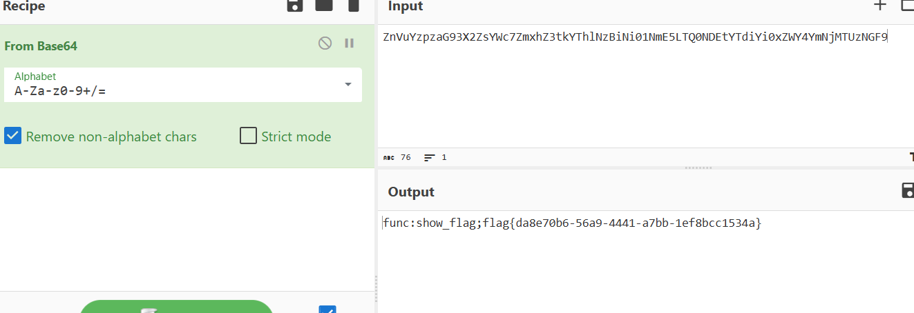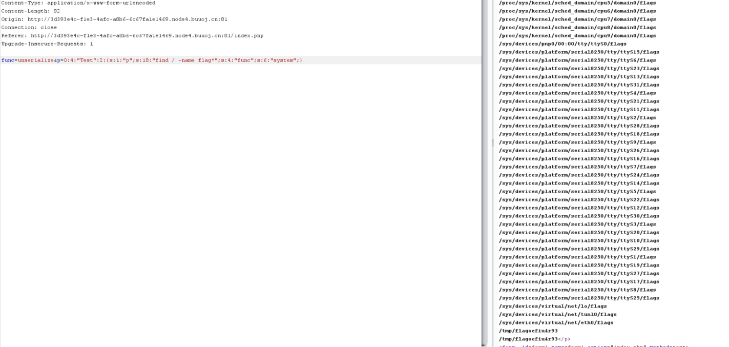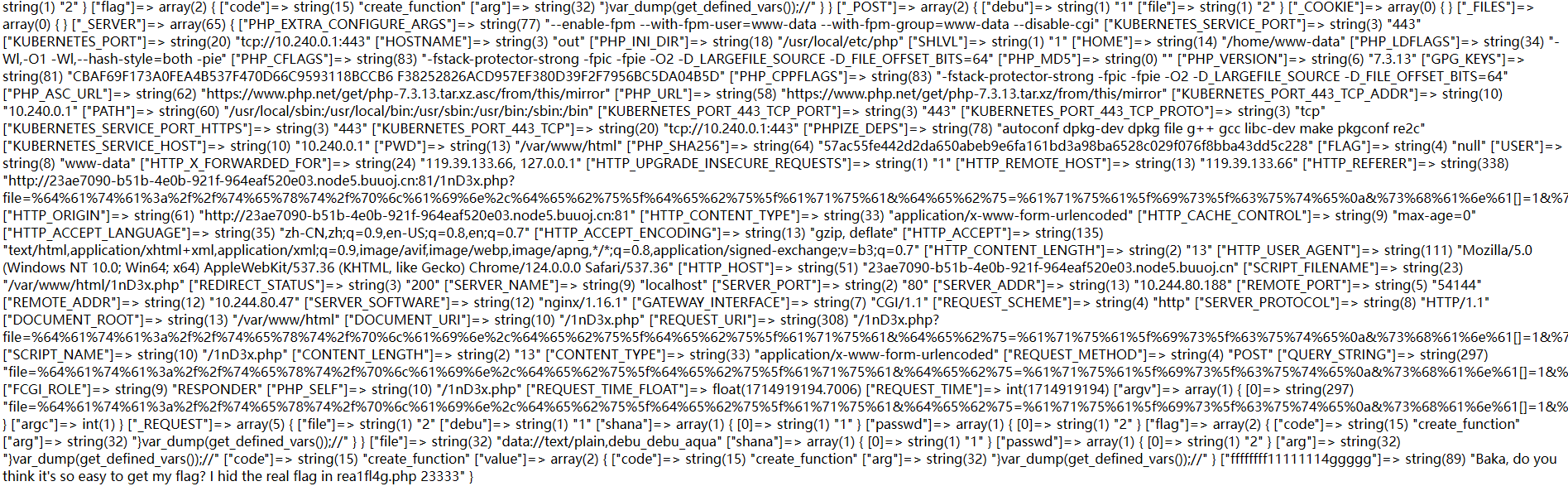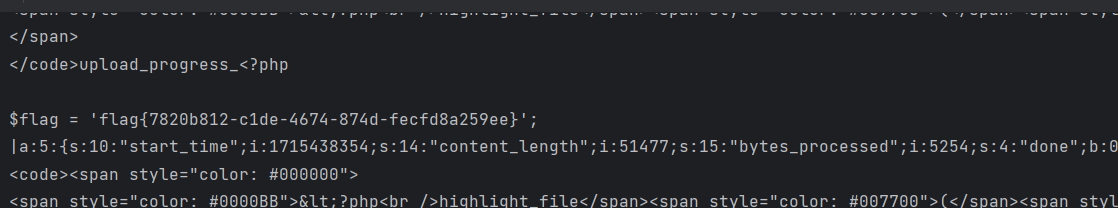 1 2 3 4 5 6 7 8 9 10 11 12 13 <?php class Flag { public $file ; public function __tostring ( ) { if (isset ($this ->file)){ echo file_get_contents ($this ->file); echo "<br>" ; return ("U R SO CLOSE !///COME ON PLZ" ); } } } ?>