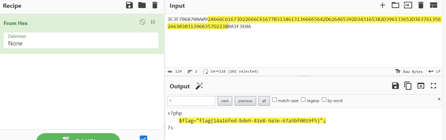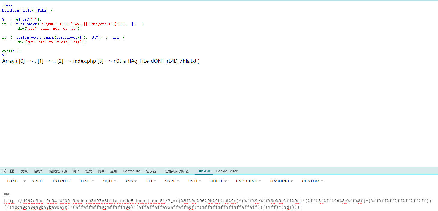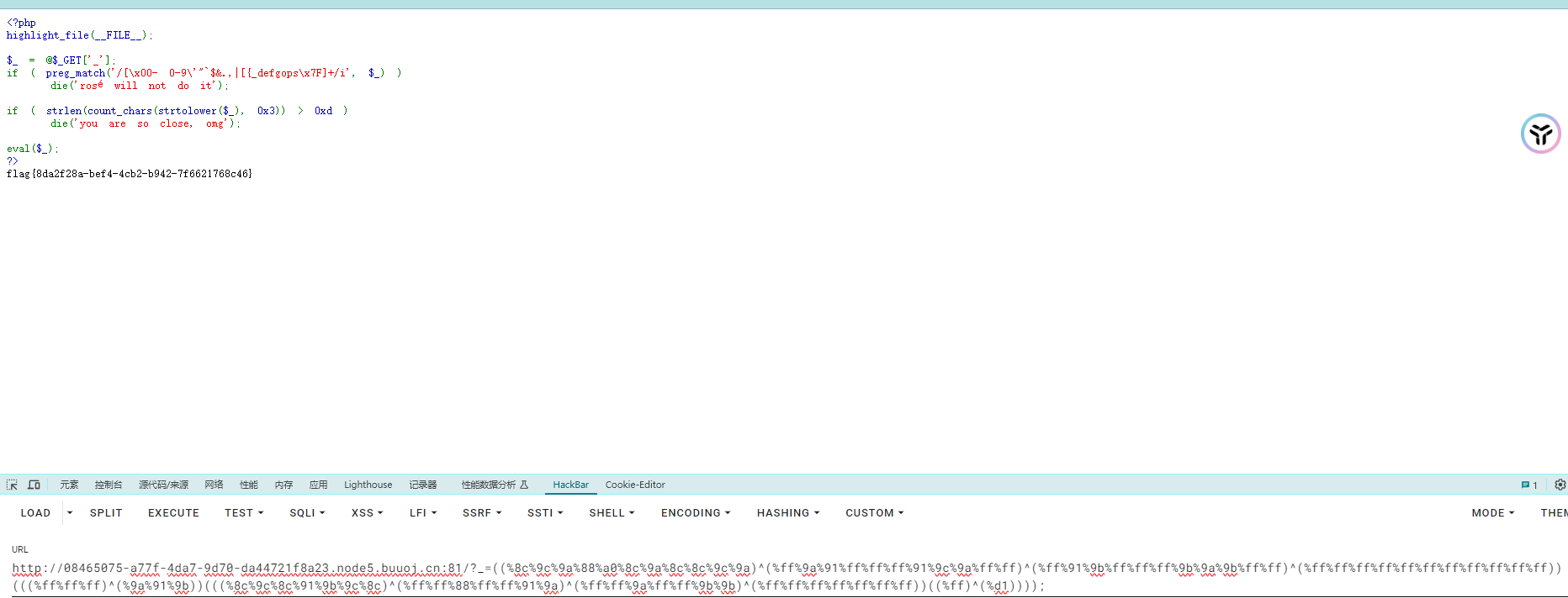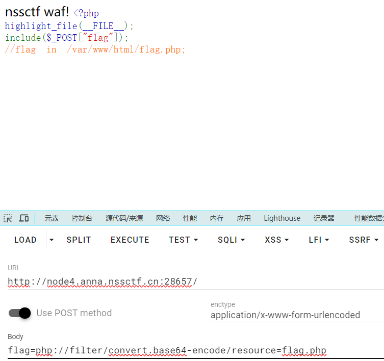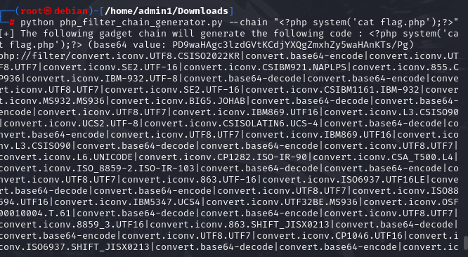 方法二 用filter链漏洞来绕过,被禁用的flag 这里要用到一个工具php_filter_chain_generator 同样查看源码就能看到flag了