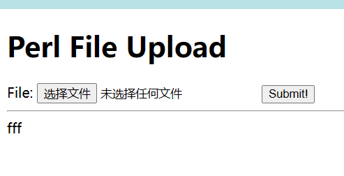 1 2 3 4 5 6 7 8 9 use strict;use warnings;use CGI; my $cgi = CGI->new;if ( $cgi ->upload( 'file' ) ) {my $file = $cgi ->param( 'file' );while ( <$file > ) { print "$_ " ; } }