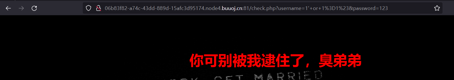 输入万能钥匙1’ or 1=1#显示do not hack me 与上面对应,限制了or