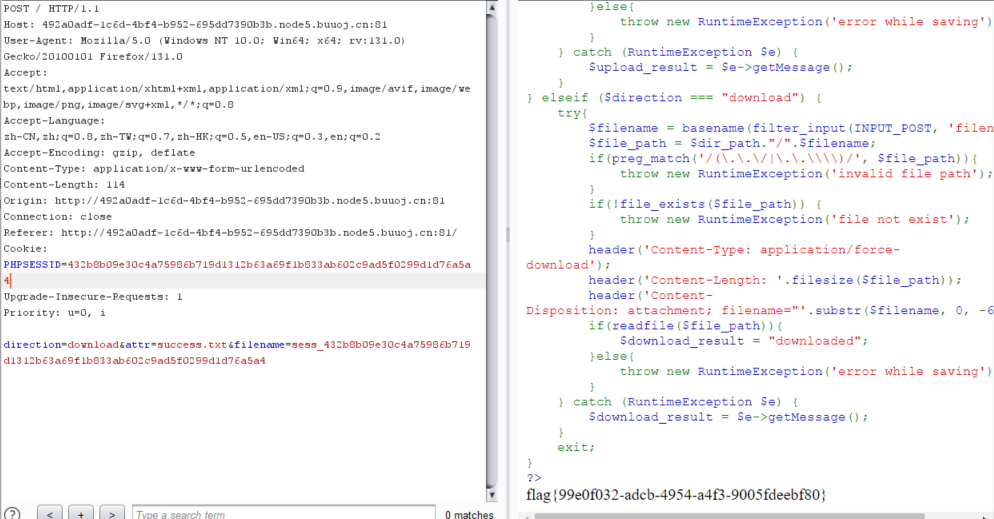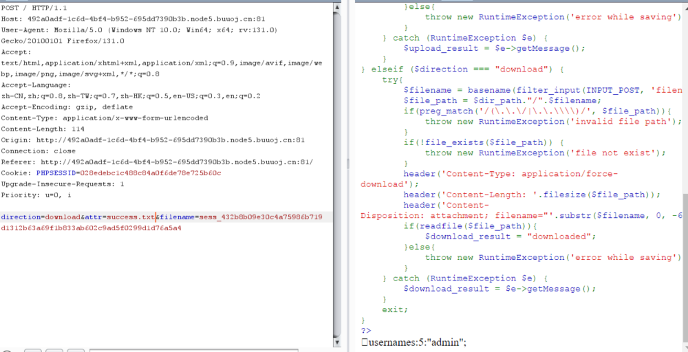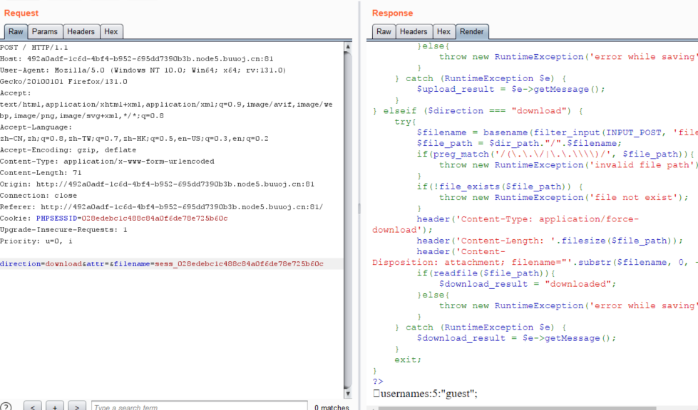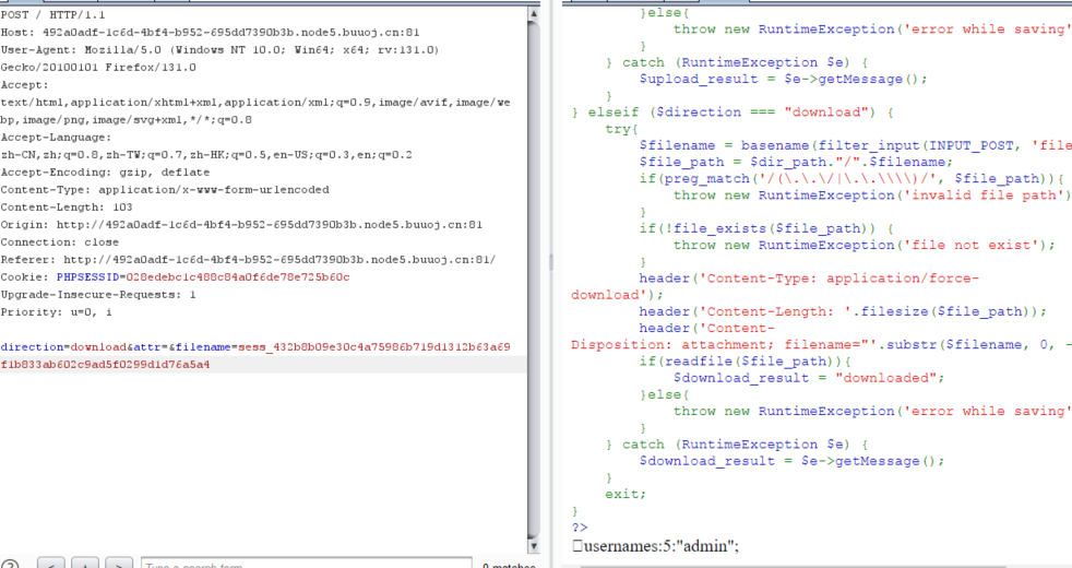 这里抓下包,替换cookie 然后就能进入upload上传文件了 但是到了上传文件时发现并不能上传 在upload目录下的源码发现注释有源码泄露