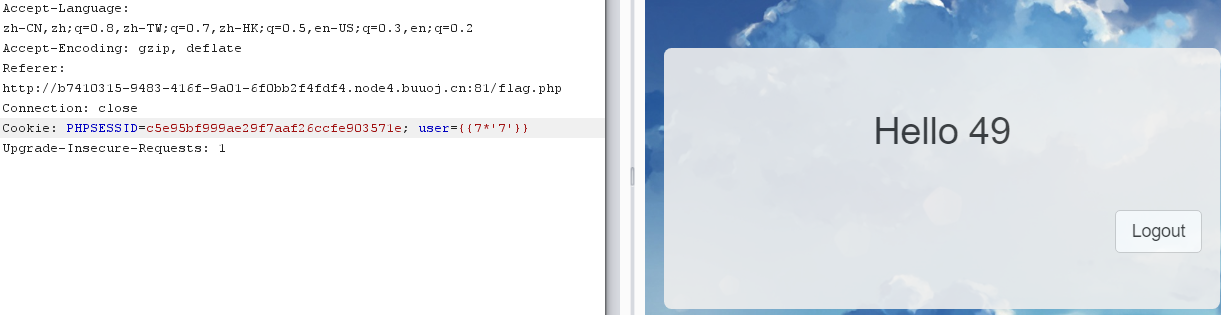 来把表达式传进去以获取我们想要的信息,这样我们猜想msg={{cookie的位置}}