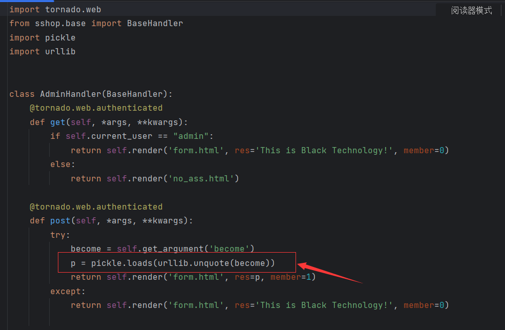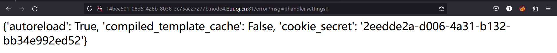 来获得我们想要的 cookie_secret在Application对象settings的属性中,访问它的话就需要知道它的属性名字,根据查阅可知:self.application.settings有一个别名是RequestHandler.settings其中handler又是指向处理当前这个页面的RequestHandler对象 RequestHandler.settings指向self.application.settings 因此handler.settings指向RequestHandler.application.settings 将handler.setting带入msg即可知道cookie_secret,再来一步步根据MD5来计算filehash