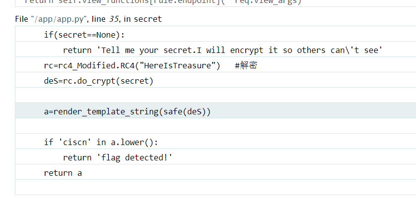 回过头发现flag.txt那个Error的页面有一个参数msg也是等于Error 发现msg可以左右页面的输出,想到之前有些题目利用一个参数可以出来phpinfo()等,因此现在目标就是怎么利用msg这个参数来找到cookie_secret了 在文档中我们可以看到相关render渲染的作用,我们可以利用 {{}}