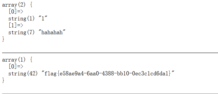 序列化结果:O:11:"FileHandler":3:{s:2:"op";i:2;s:8:"filename";s:8:"flag.php";s:7:"content";s:1:"1";}