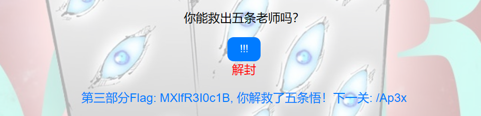 会赢吗 第一关在源代码里 第二关看js 进入题目所给的路径,貌似要用控制台输入js操作? 第三关还是要看js 看js的意思是读前端的内容,我们把前端的已封印改为解封,然后点击button 第四关还是js 注意红圈,如果我们禁用了js,将执行红圈里的内容而忽略上面的 拼接到一起base64解码即可