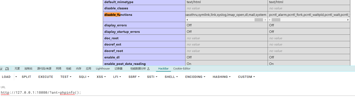 搭建完成后访问127.0.0.1:18080,尝试使用system函数执行命令失败