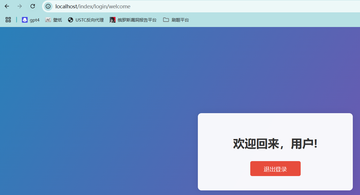 | <!DOCTYPE html> <html> <head> <meta charset="UTF-8"> <title>欢迎页</title> <link rel="stylesheet" href="/static/css/style.css"> </head> <body> <div class="welcome-container"> <h1>欢迎回来,<?php echo session('user_id') ? '用户' : '游客'; ?>!</h1> <a href="{:url('logout')}" class="btn-logout">退出登录</a> </div> </body> </html>