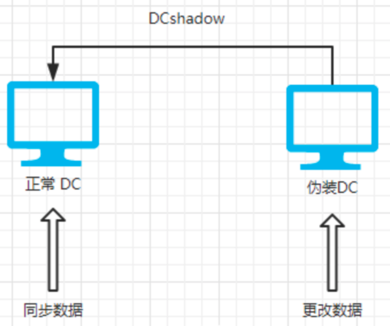 3)强制触发域复制,使得指定的新对象或修改后的属性能够同步进入其他正常域控中,DCShadow 攻击示意图如图所示: