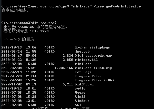 这个时候系统提示 Skeleton Key 已经注入成功,此时会在域内的所有账号中添加一个 Skeleton Key,其密码默认为:“mimikatz”。
